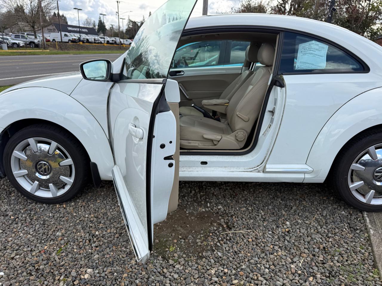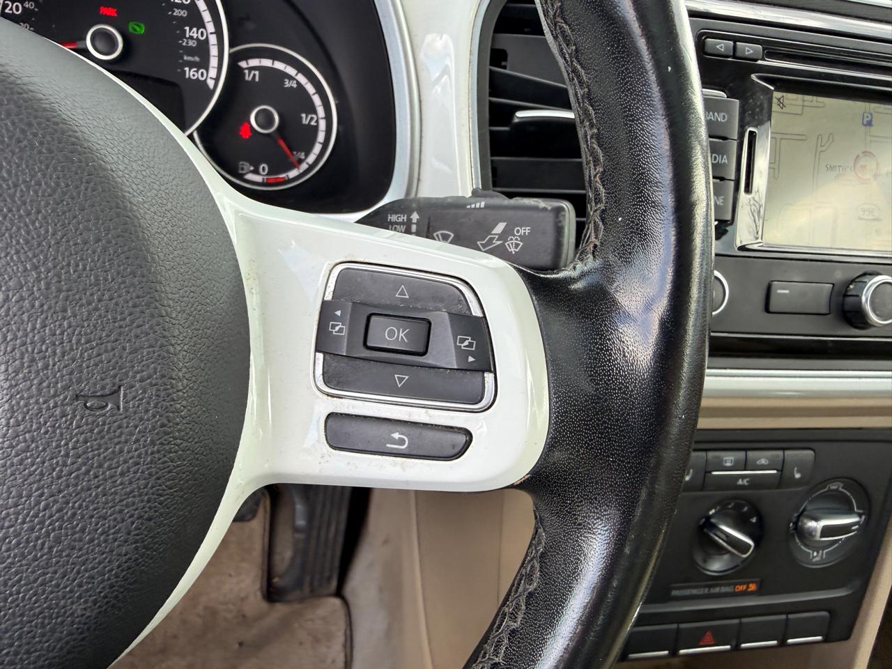 Step into this sleek and stylish white 2014 Volkswagen Beetle and get ready to hit the road in style! This car is not just a mode of transportation, it's a statement. With a nostalgic and charming design that harkens back to the classic Beetle, this car is sure to turn heads wherever you go.One of the most exciting features of this Beetle is its turbocharged engine, giving you that extra boost of power for a thrilling driving experience. The smooth handling and responsive steering make maneuvering through city streets or winding country roads a breeze.